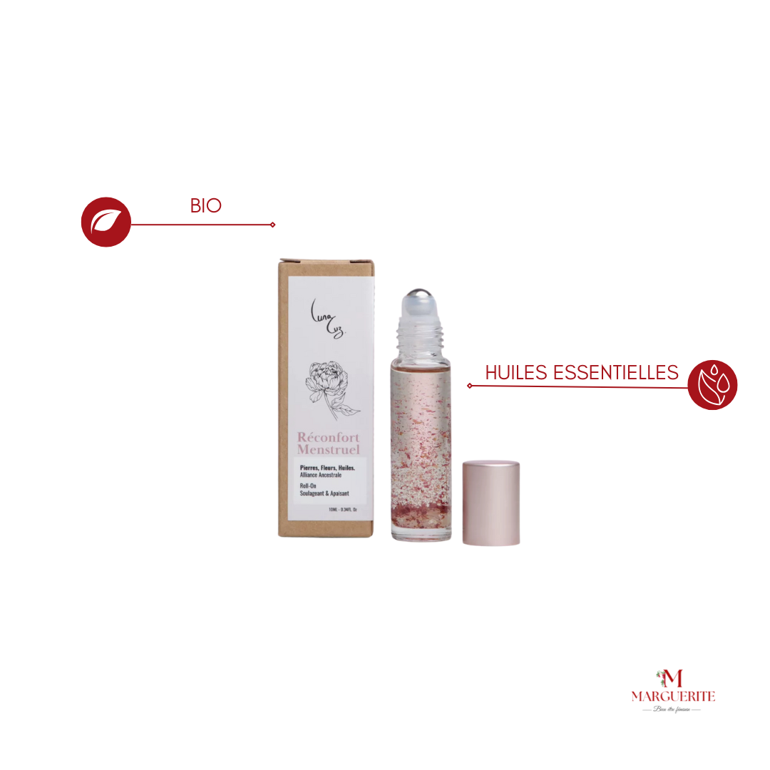 Découvrez le Roll-On Réconfort Menstruel de LUNALUZ , conçu pour vous offrir un soulagement naturel des douleurs menstruelles et des symptômes de la ménopause . Grâce à son mélange d'huiles essentielles et de pierres énergétiques , ce roll-on devient votre allié bien-être à chaque étape de votre cycle.